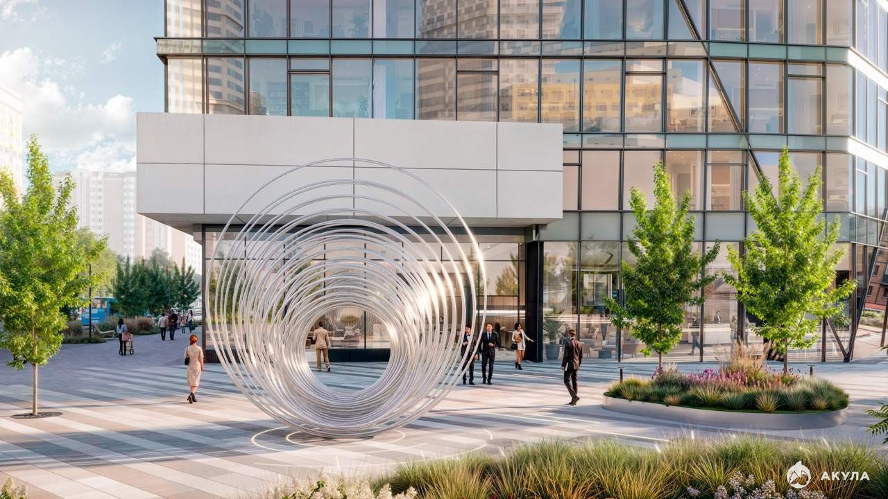В центре - просторная встречающая площадь, рассчитанная на большой пешеходный поток. Пространство открытое, понятное: в нем легко ориентироваться и удобно назначать встречу у знакового арт-объекта.