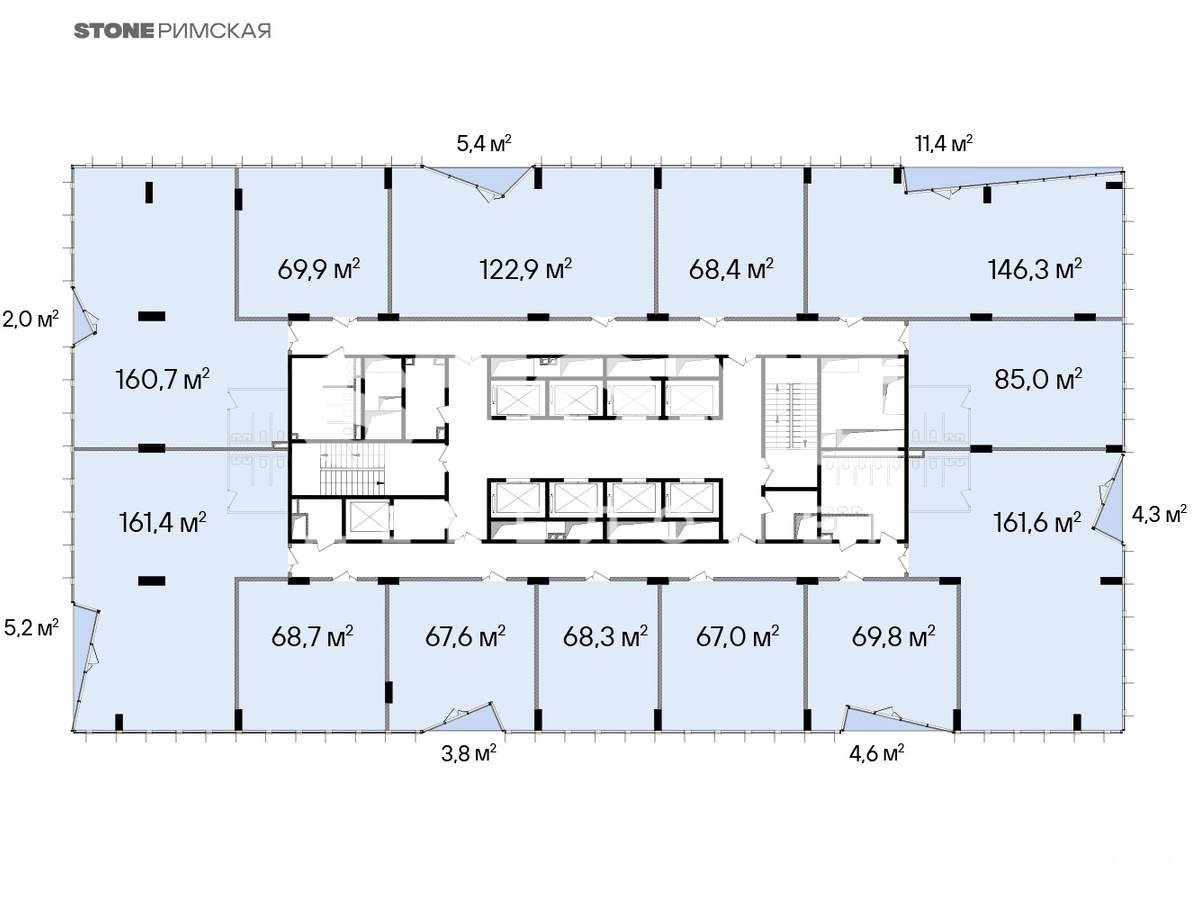 Планировки соответствуют требованиям функционального офиса: глубина помещения - до 10 м, высота потолков - 3, 65 м, шаг колонн - 8, 4 х 8, 4 м, отделка Shell&Core. Окна в пол обеспечат оптимальный уровень инсоляции и предусматривают возможность естественного проветривания.