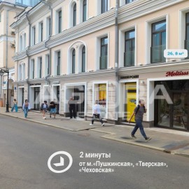 Продажа нежилого помещения площадью 26, 7 кв.м (блок № 2 на плане), расположенного на 1-м этаже административного здания. 2 минуты от центральных станций метро: Пушкинская, Тверская, Чеховская. 1-я линия домов улицы Большая Бронная. Классический фасад, витрины, зальная...