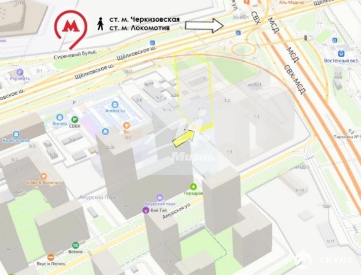 – Помещение находится в 6 минутах пешком от станции метро «Локомотив», в 10 минутах пешком от станции метро «Черкизовская».