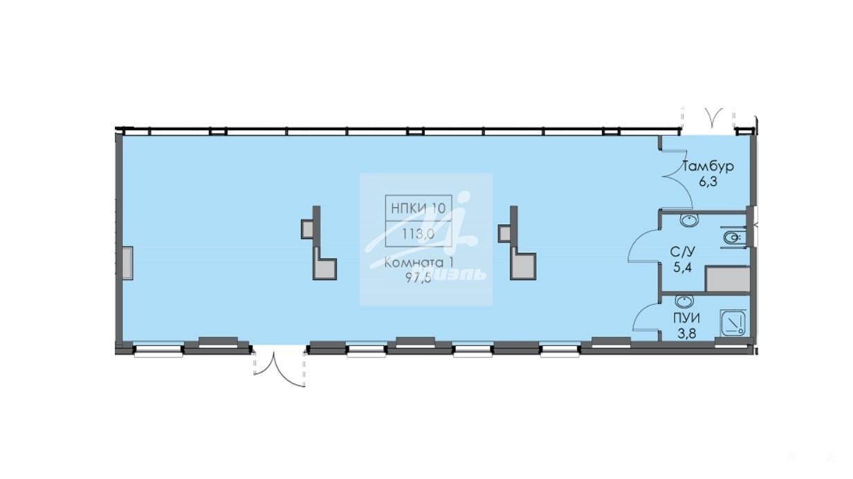 Площадь помещения 113 м2, идеальный прямоугольник, все коммуникации центральные, мощность 25 кВт.