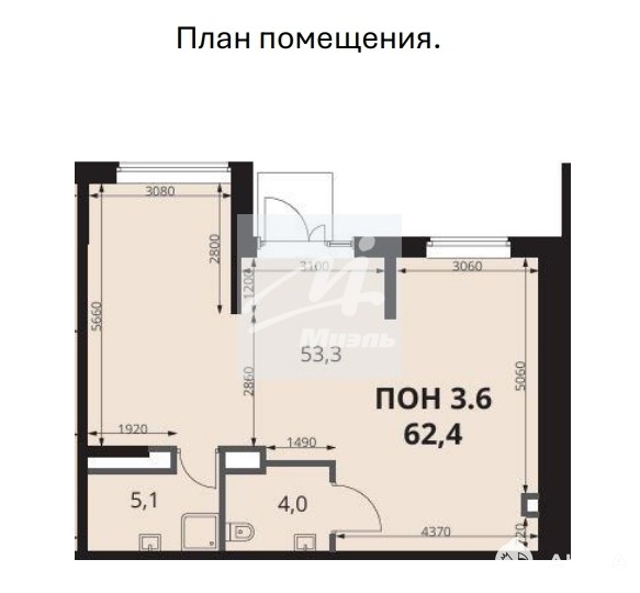 - Общая площадь - 62, 4 м2.