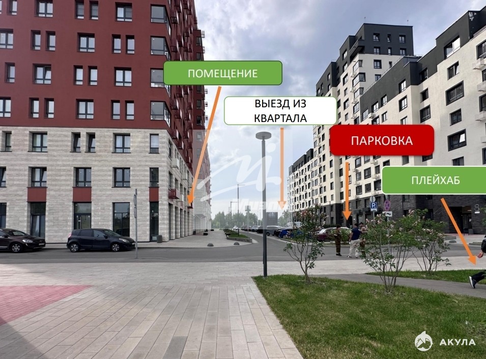 - Помещение отлично видно как с улицы, так и со стороны зоны активностей, где проходят основные пешеходные маршруты внутри квартала.