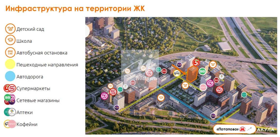 - Станция метро «Потапово» - 270 м;