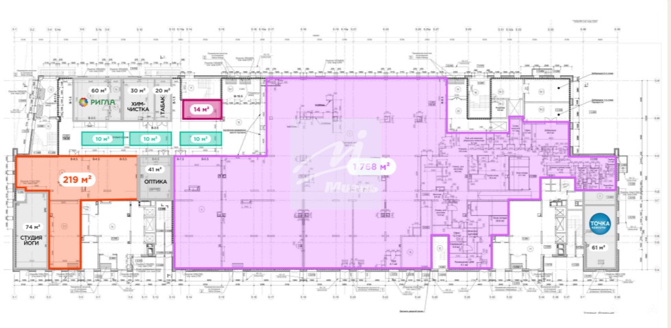 - Арендаторы: Табачный магазин, аптека Ригла, Гимнастический зал, Pride Fitness, Химчистка, Оптика, Точка красоты, Постаматы, Швейная мастерская