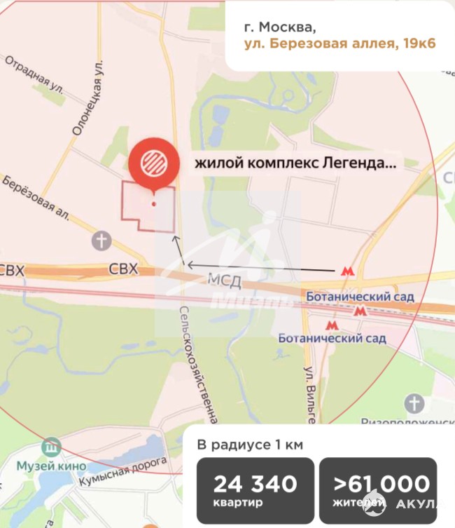 - В радиусе 1 км - 24 340 квартир >61 000 жителей