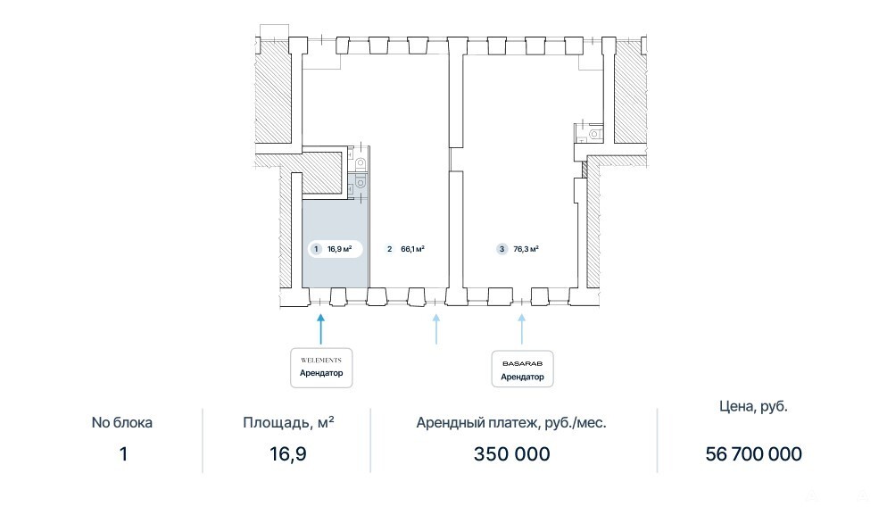 Арт. 91677348. Продается Street Retail помещение торгового или свободного назначения (ПСН) на 1-м этаже жилого здания площадью 66, 1 кв.м. Имеются в продаже ПСН и другой квадратуры, от 16.9 до 76.3 кв. м.