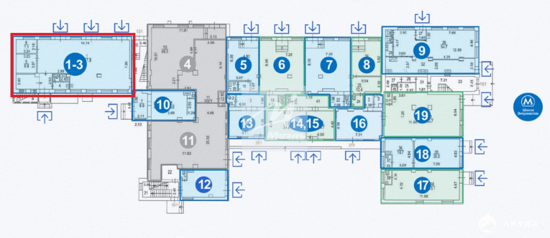 - Отдельный вход. Помещение № 1 - 3 .