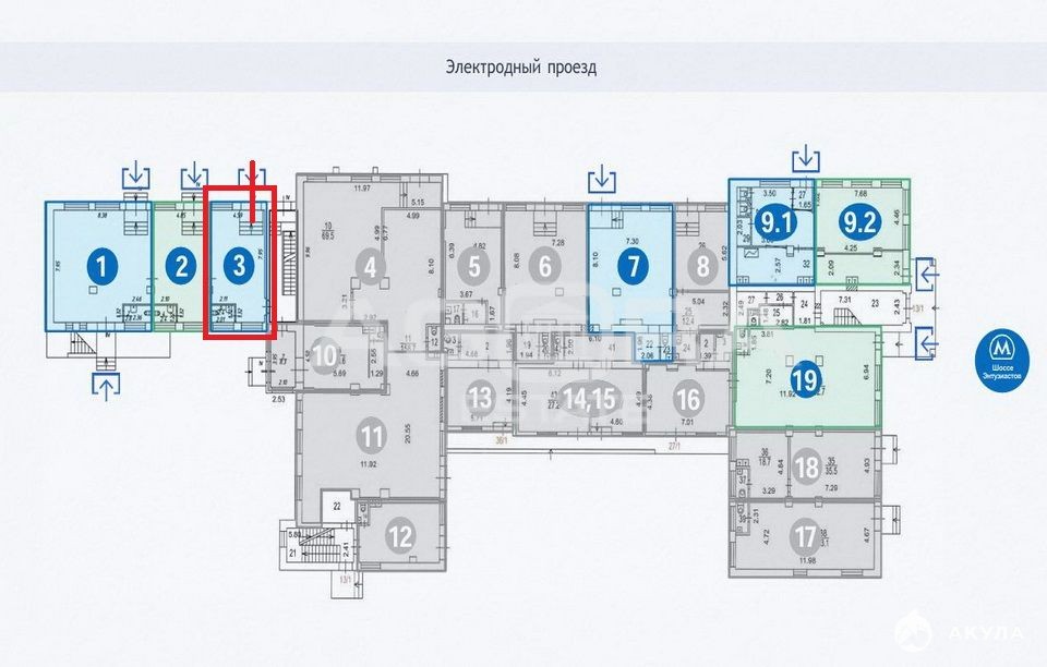 От собственника. ПСН расположено на 1-м этаже административного здания, на 1-й линии Электродного проезда и шоссе Энтузиастов, в 200 метрах от станции метро Шоссе Энтузиастов. Площадь помещения 36, 4 м2 (блок 3 на плане). В помещении есть отдельный вход с фасада. Большие витринные окна, свободная планировка, высокие потолки – 3 м, собственный с/у, выполнен свежий ремонт в стиле лофт. Установлена приточно-вытяжная вентиляция и система центрального отопления. Выделенная мощность 8 кВт. В блоке установлены приборы учета электроэнергии и воды.