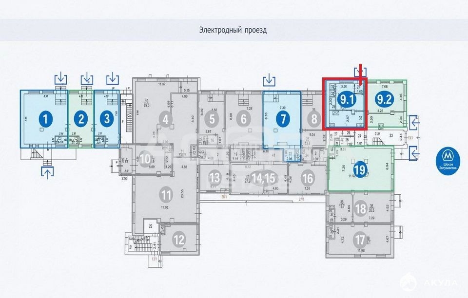От собственника. Торговое помещение расположено на 1-м этаже административного здания, на 1-й линии Электродного проезда и шоссе Энтузиастов, в 200 метрах от станции метро Шоссе Энтузиастов. Площадь помещения 40 м2 (блок 9.1 на плане). В помещении есть отдельный вход. Большие витринные окна, свободная планировка, высокие потолки – 3 м, собственный с/у, выполнен свежий ремонт в стиле лофт. Установлена приточно-вытяжная вентиляция и система центрального отопления. Выделенная мощность 10 кВт. В блоке установлены приборы учета электроэнергии и воды.