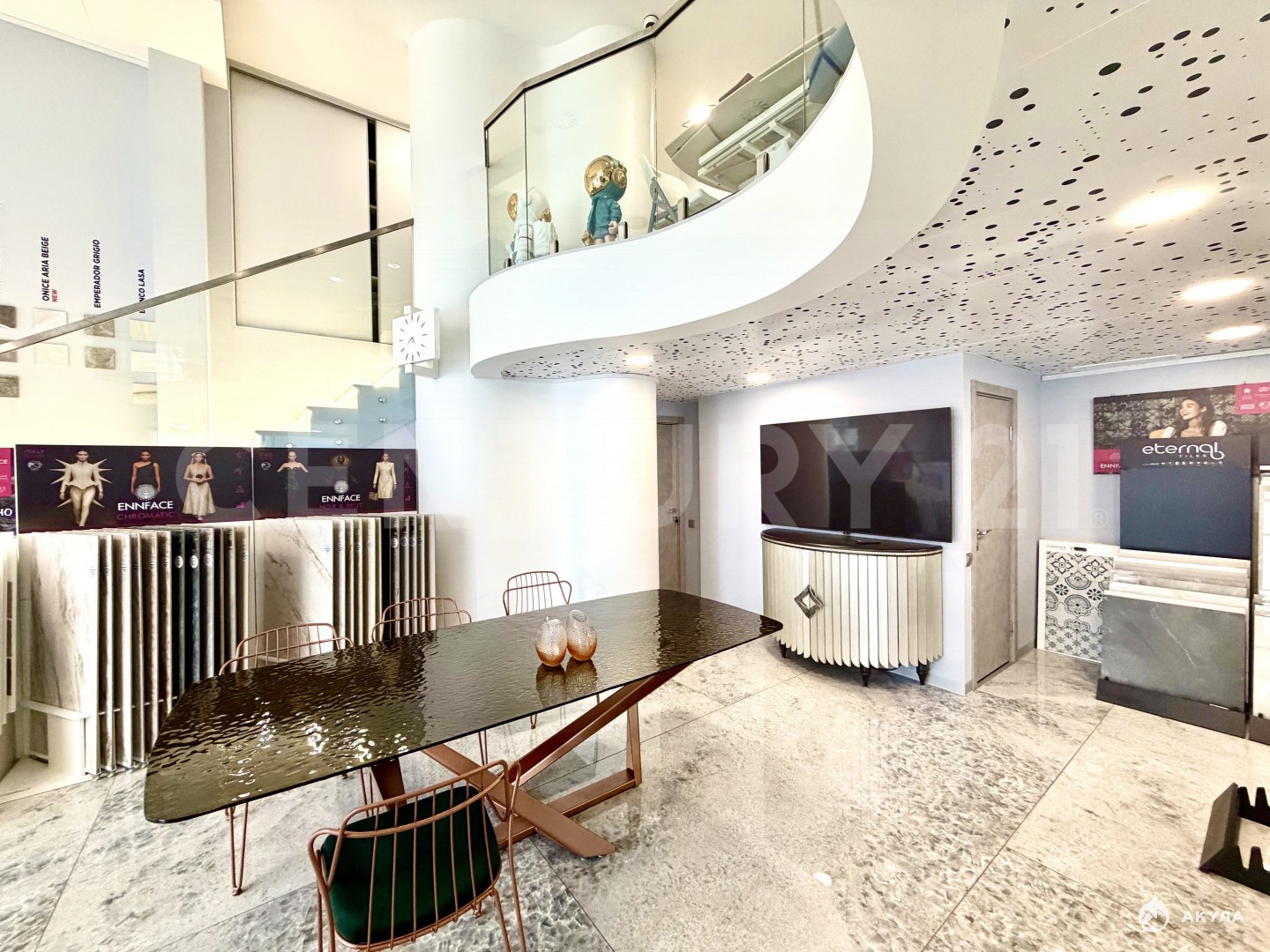 Продуманное зонирование: просторное открытое пространство, изолированный кабинет руководителя, торговая зона с витринами, 2 санузла, серверная комната, кладовая.
