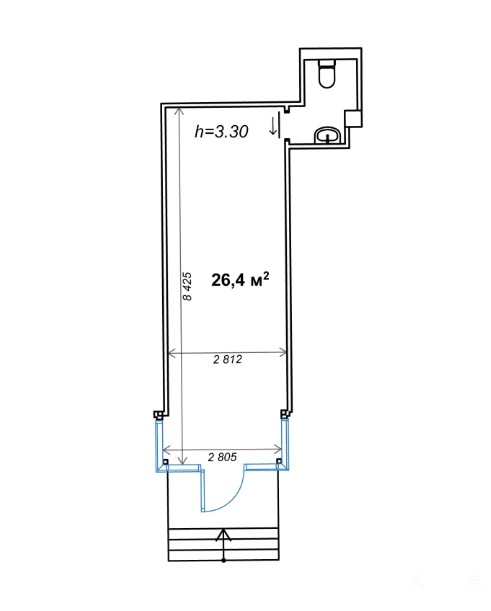 Площадь: 26, 4 м²