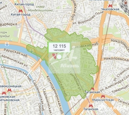 - Проживают в 10 мин ходьбы - 11779 человек.