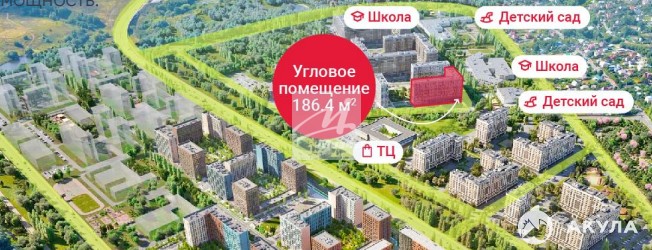 - Угловое помещение на пересечении основных пешеходных троп квартала.