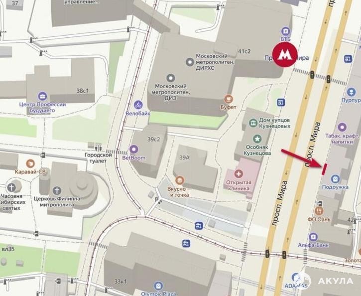 Лот №967461 Предложение от Собственника! Помещение формата стрит-ритейл 14, 2м2 расположено на первой линии Проспекта Мира в престижном Мещанском районе Москвы. Непосредственно напротив здания находится вестибюль станции метро «Проспект Мира», привлекающий ежедневный пассажиропоток впечатляющего объема — 51 000 человек. Кроме того, перед помещением находятся остановки наземного транспорта, что обеспечивает дополнительный поток потенциальных клиентов.