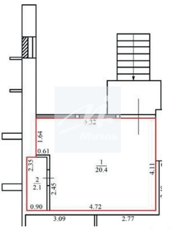 - Площадь - 22, 5м2.