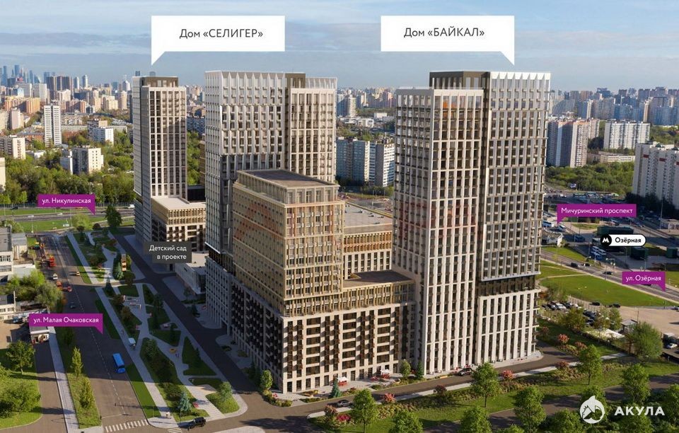 ЖК "Страна.Озерная" - это жилой комплекс с квартирами, состоит из 2-х корпусов: Дом Байкал и Дом Селигер, из 9 секций переменной этажности – от 9 до 30 этажей. Дома образуют внутренний двор, внутренняя территория благоустроена, есть детские и спортивные площадки, зона для занятий йогой и настольным теннисом. Парковка подземная на 367 м/м. Поблизости расположено несколько зон отдыха: ландшафтный заказник «Долина реки Очаковки» (Очаковский парк), Парк Школьников, Парк Олимпийской деревни, Тропарёвский лес, Воробьёвы горы.