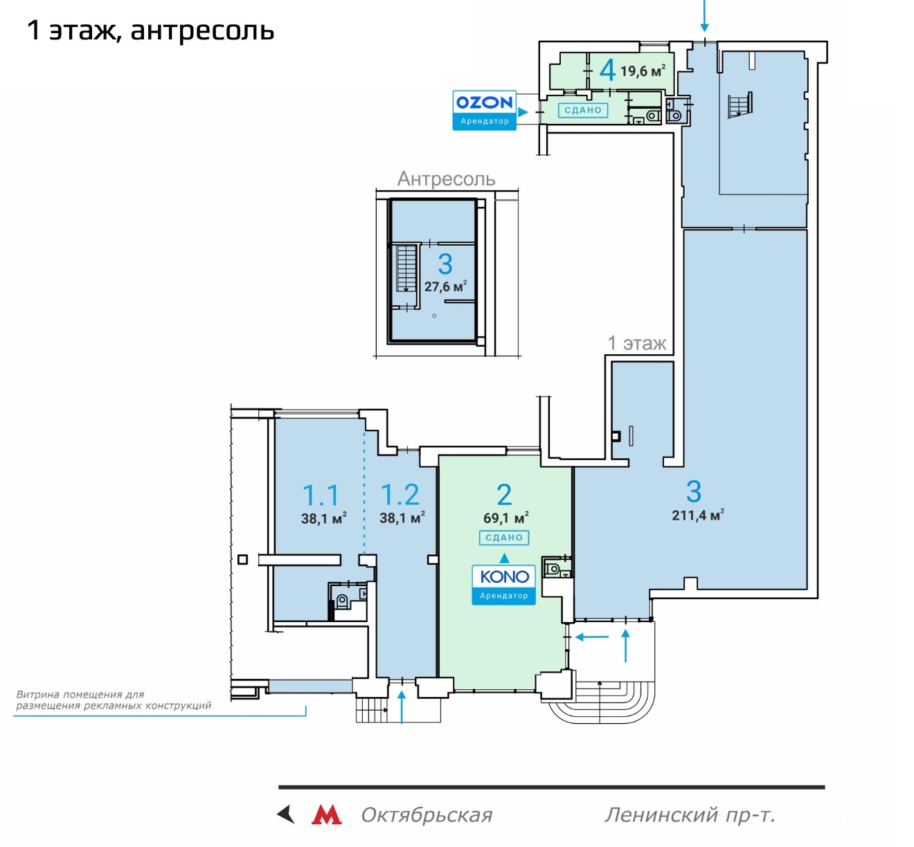 Торговые помещения на первой линии у выхода из метро. Готовый формат под арендный бизнес или собственный проект. Отдельные входы с фасада, свободная планировка, вентканалы под общепит, высокий рекламный потенциал.