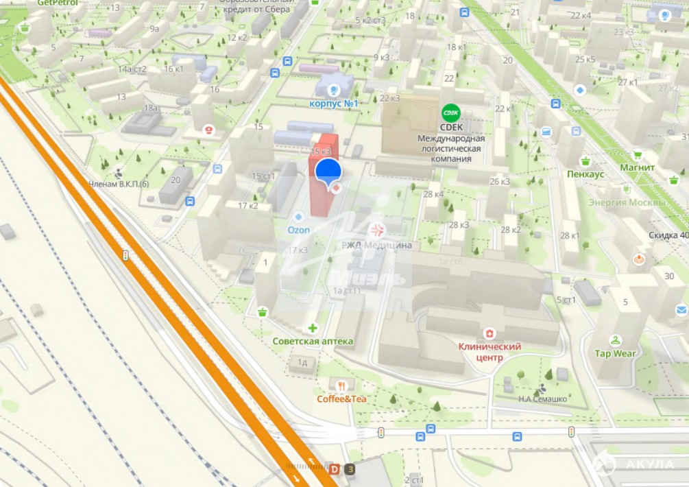 - Объект расположен внутри жилого квартала, рядом находится РЖД-Медицина.