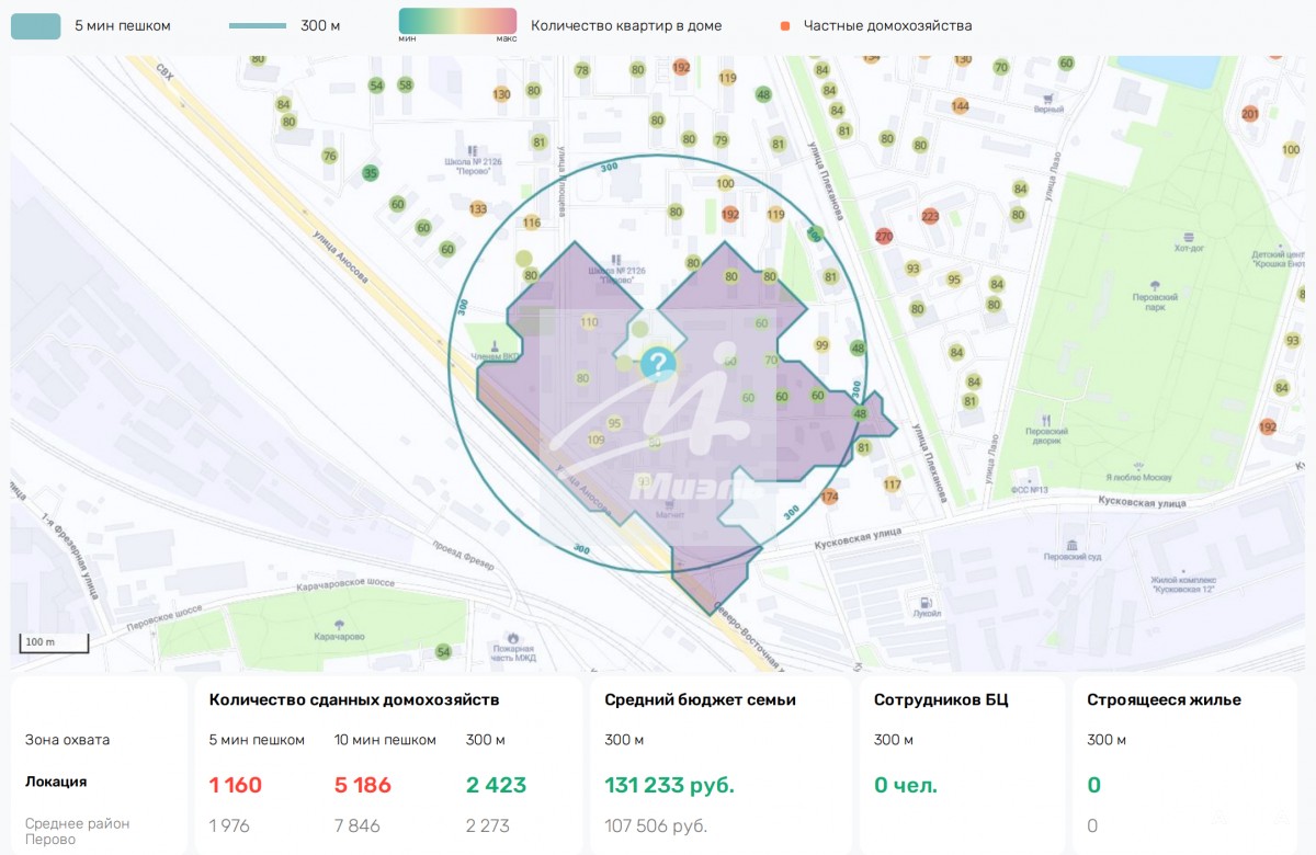 - Высокая плотность населения – 6 010 домохозяйств Средняя плотность – 5 905 домохозяйств (район Перово).