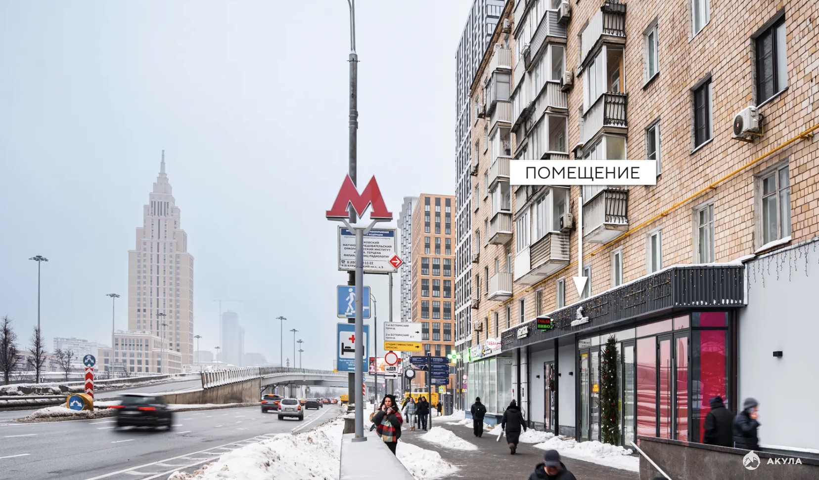 Помещение расположено в шаге от метро «Динамо» на Ленинградском проспекте — одной из ключевых магистралей Москвы. Район с высокой деловой активностью и плотной жилой застройкой.