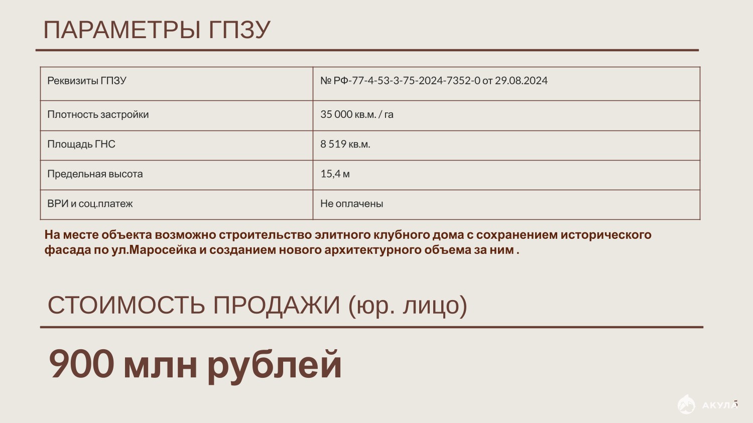 фасада по ул.Маросейка и созданием нового архитектурного объема за ним. ПРОДАЖА (юр. лицо)