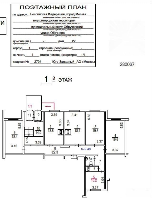 Номер объекта: 568340. Продажа помещения с арендатором по адресу: ул. Обручева, 22к1.