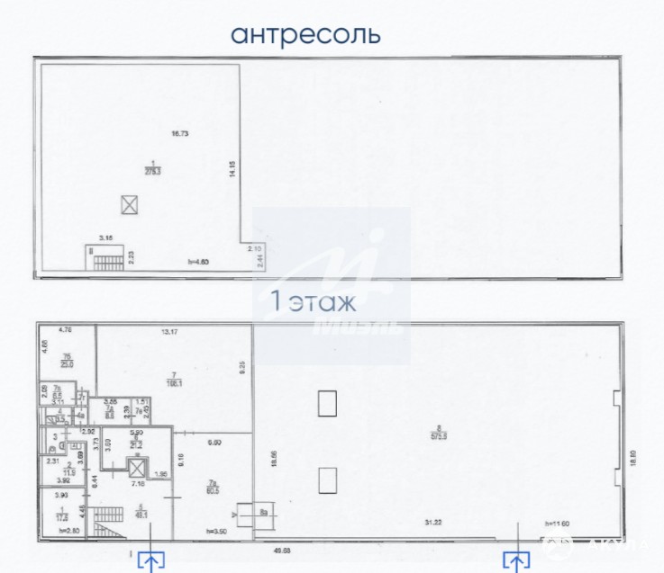 - Материал перекрытий: Ж/б (антресоль – металл).