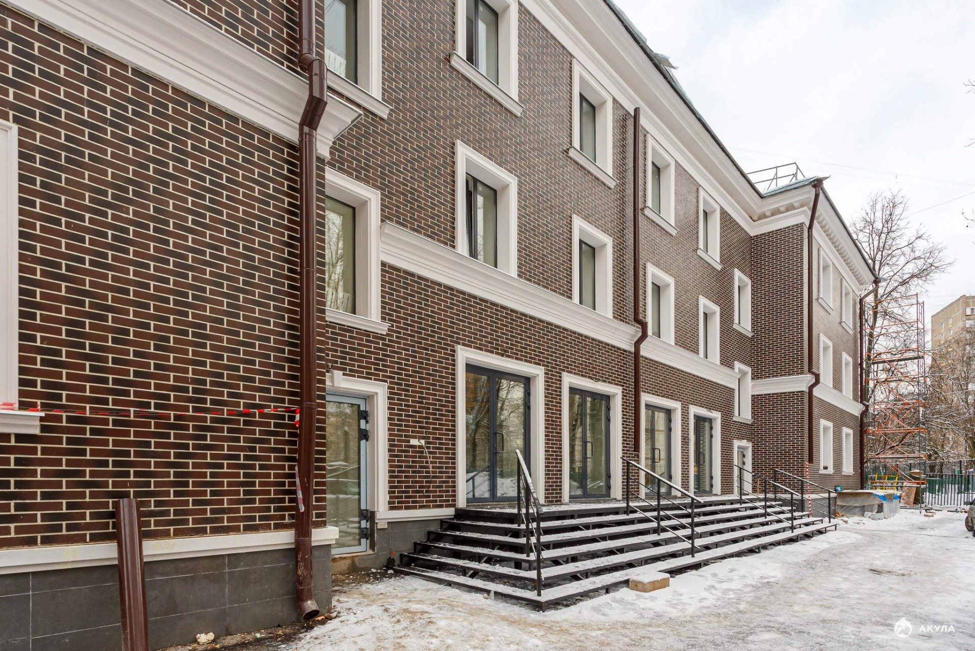 3-этажное кирпичное здание в традиционном английском стиле с огороженной территорией. Проведена полная реновация.