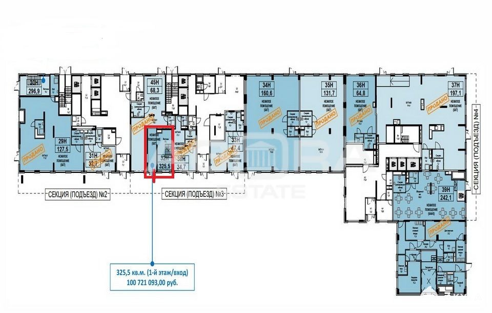 Помещение находится в подъезде №3, корпус 3, это 4-я очередь строительства. Сдача – 1 квартал 2026 года.