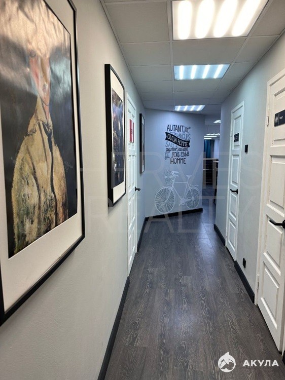 **160, 3 м²** в **цокольном этаже** 5-этажного жилого дома. Высота потолков **2, 7 м**, кабинетная планировка, современная отделка. Два отдельных входа/выхода, кондиционирование и вентиляция.
