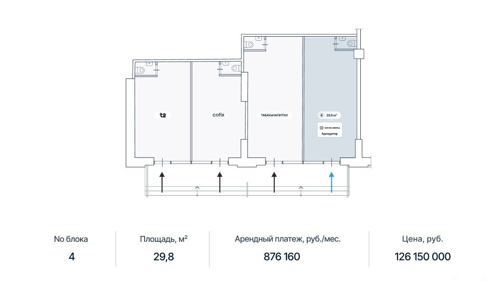Коммунальные платежи и электричество оплачиваются арендатором отдельно, обеспечивая Вам чистую прибыль.