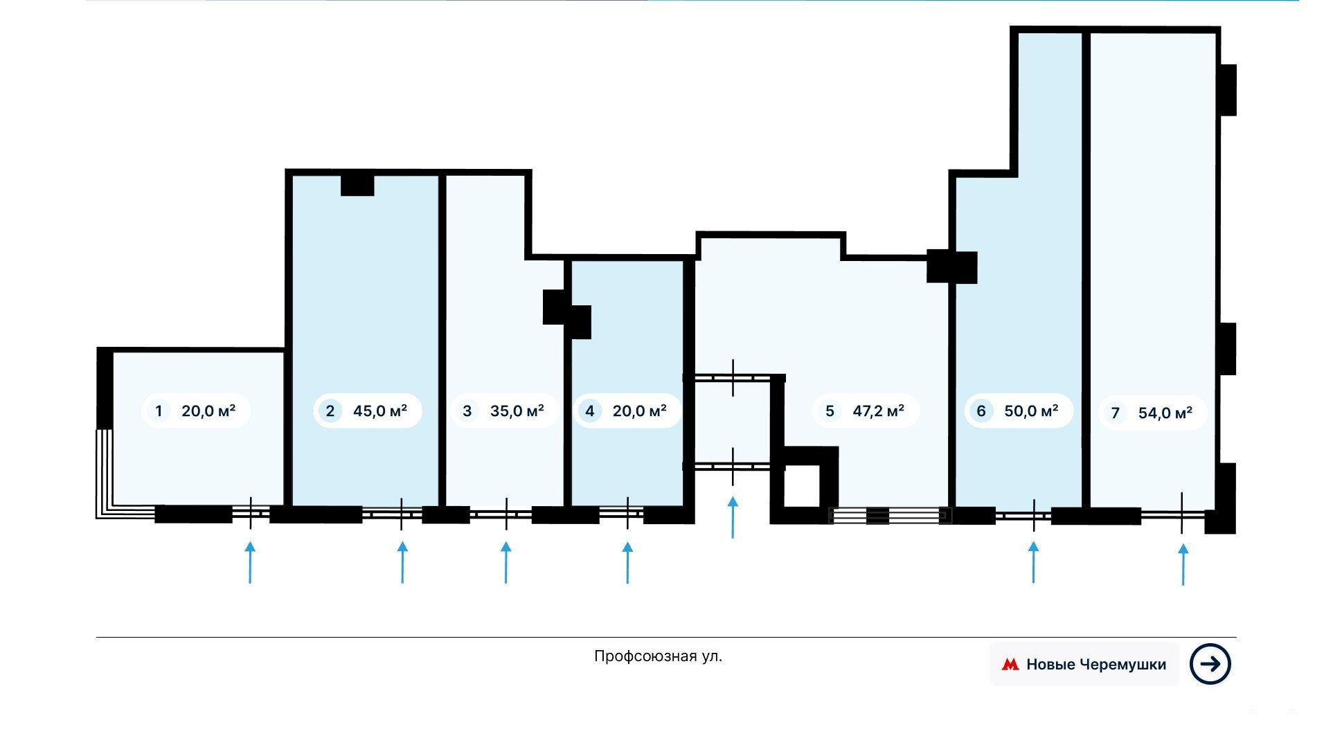 Арт. 91763211. Предлагаются на продажу помещения на улице Профсоюзная, ЮЗАО, г. Москва. Продажа помещений у метро. Шаговая доступность от ст. метро «Новые Черёмушки» — менее 1 минуты пешком. Отличная пешеходная и транспортная доступность.