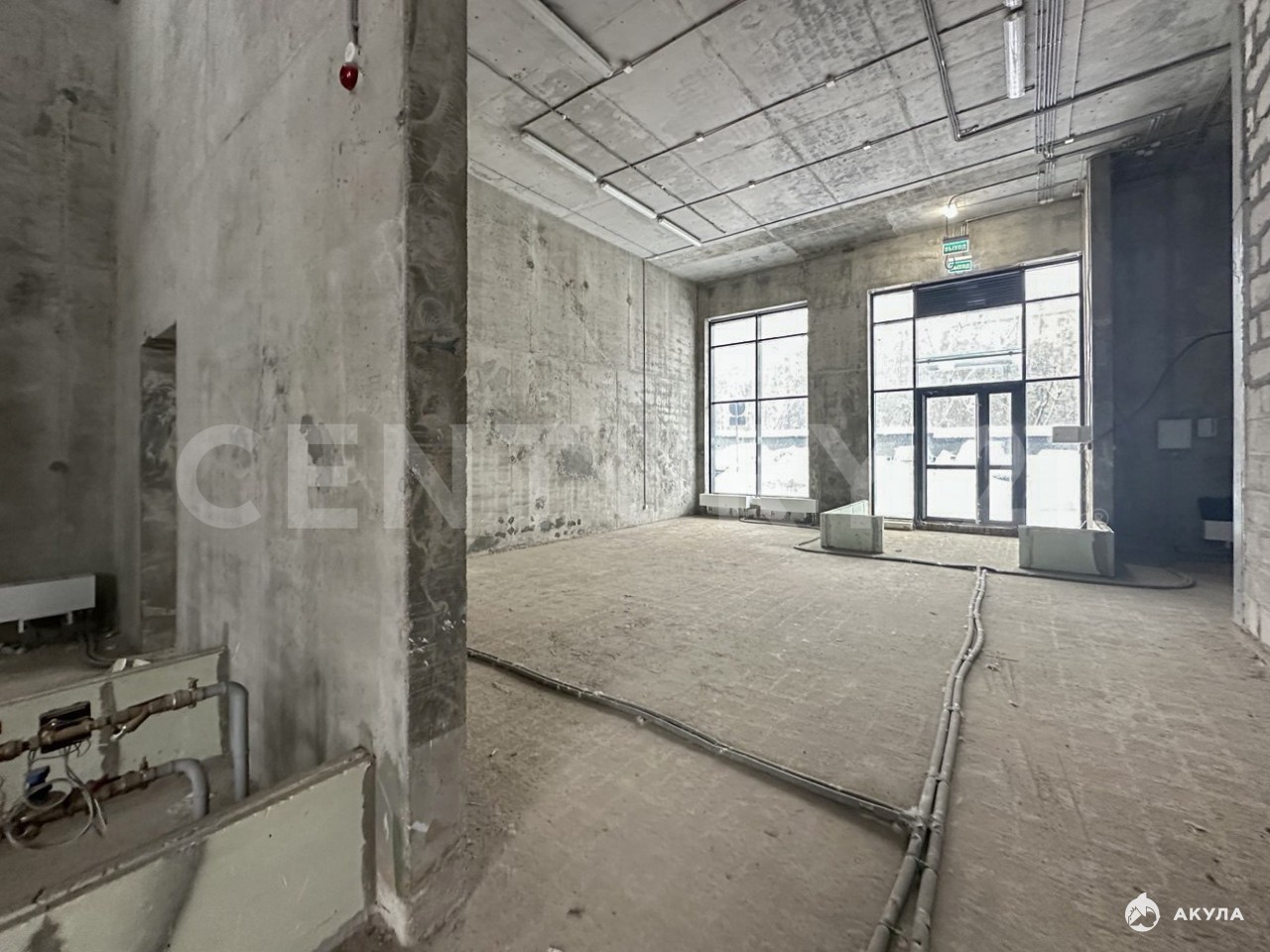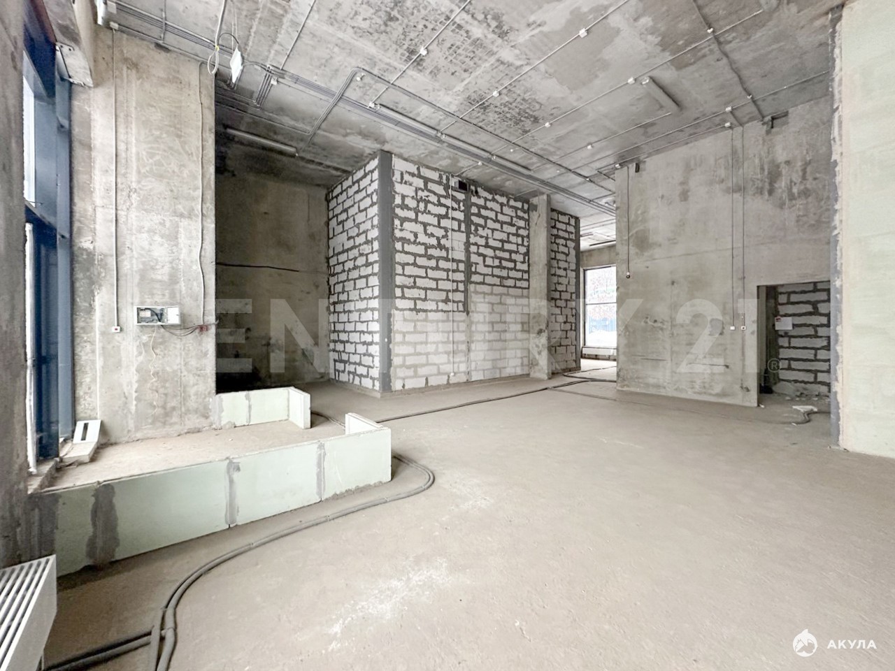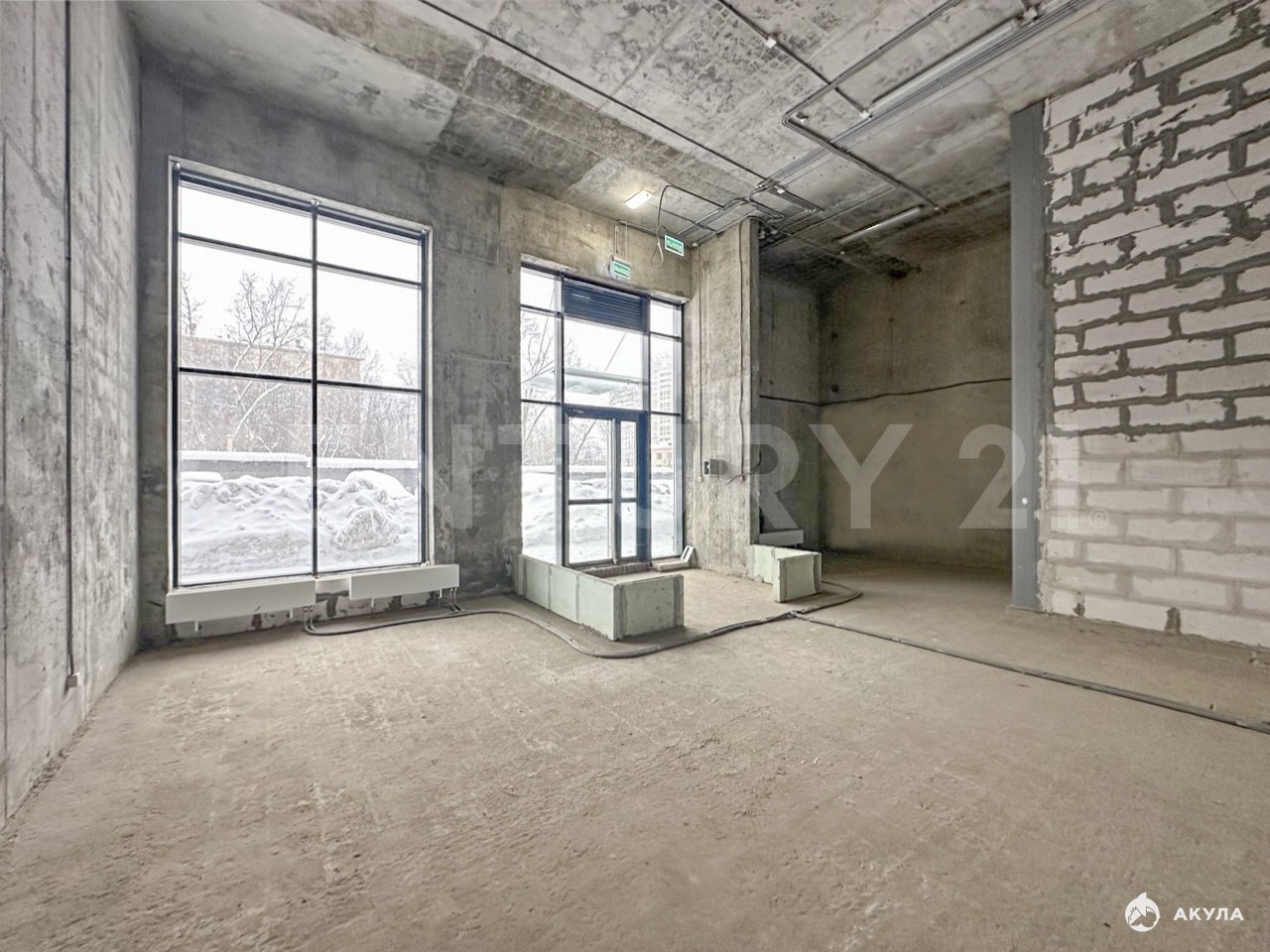 Высота потолков - 5.30 м., возможность возведения антресольного этажа.