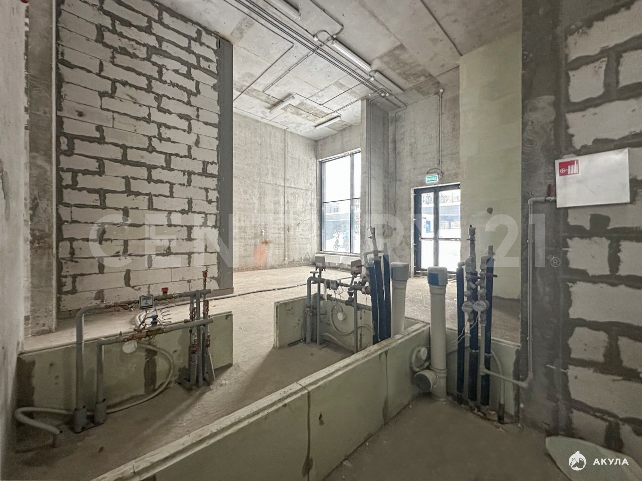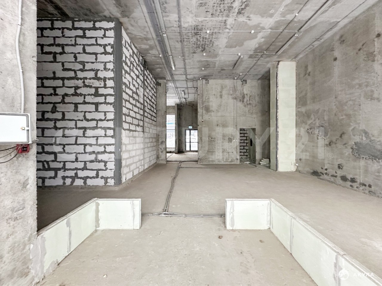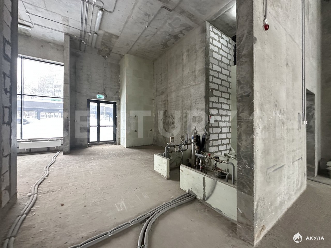 Высота потолков - 5.30 м., возможность возведения антресольного этажа.