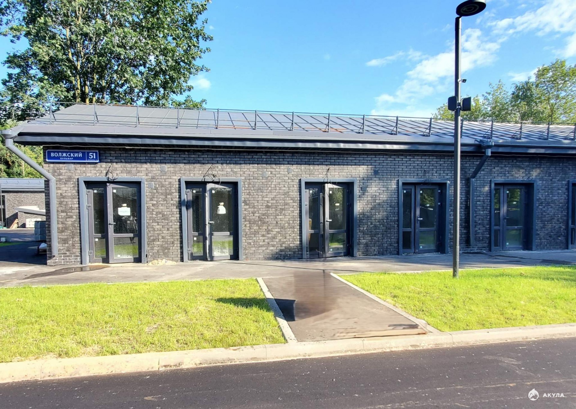 Отделка фасадов выполнена панелями с имитацией клинкерного кирпича. Дополнительно на территории организованы зоны отдыха на свежем воздухе, также дополнительно имеется возможность для организации летних веранд и кафе.