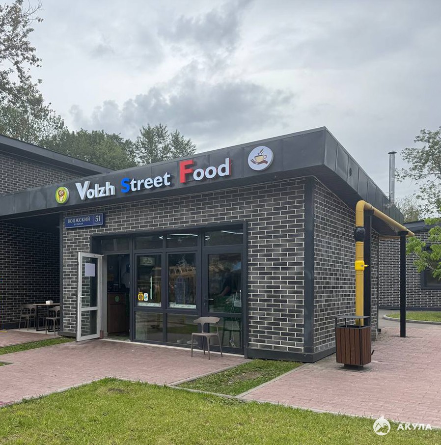 Отделка фасадов выполнена панелями с имитацией клинкерного кирпича. Дополнительно на территории организованы зоны отдыха на свежем воздухе, также дополнительно имеется возможность для организации летних веранд и кафе.