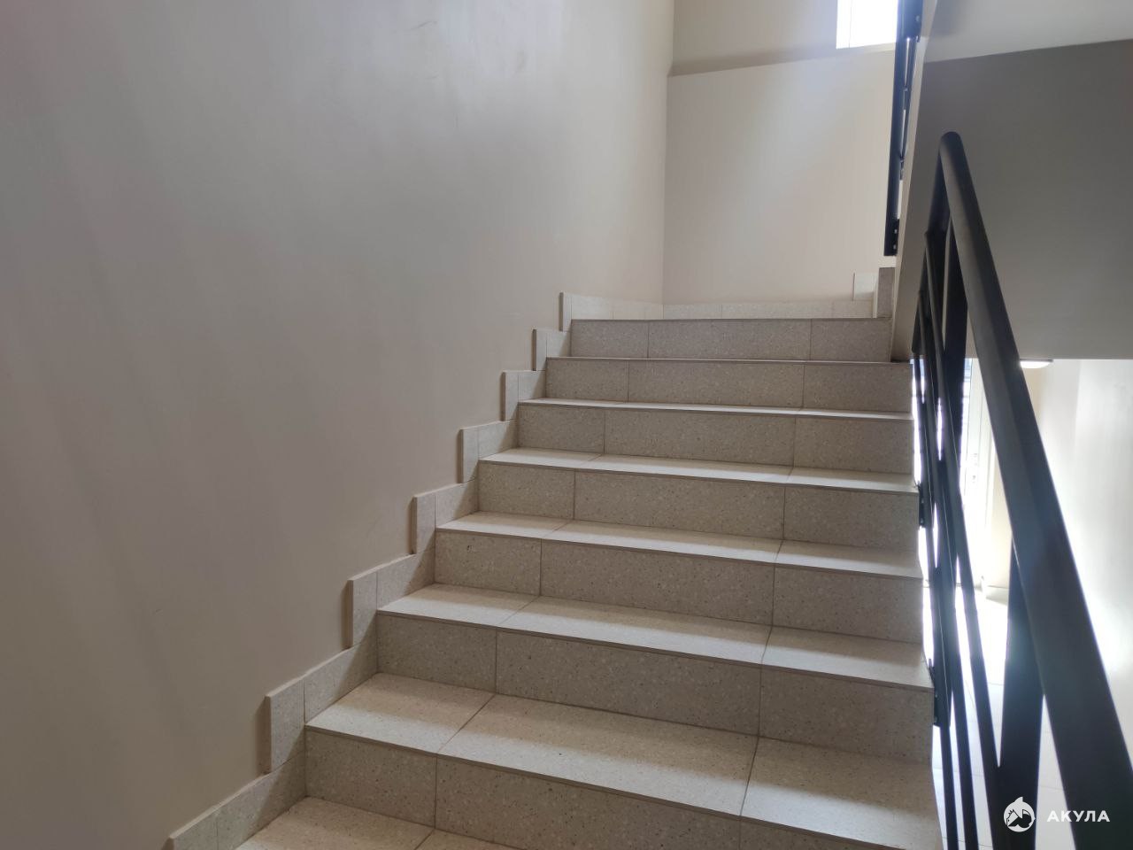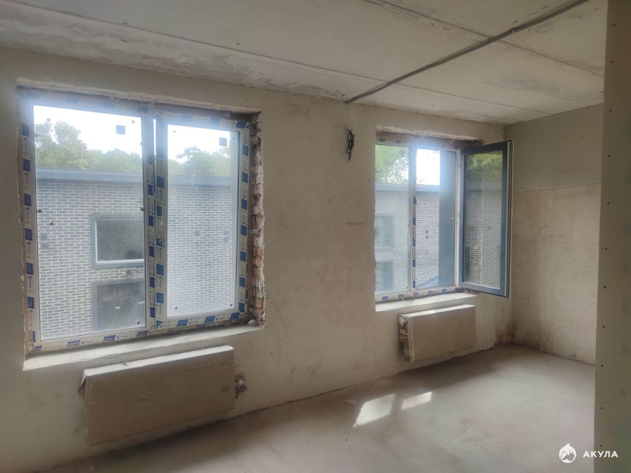 Помещение под чистовую отделку. Установлены: качественная входная дверь, вытяжная вентиляция, радиатор отопления, электросчетчик, автомат на 5 кВт на помещение, выходы хв/гв.