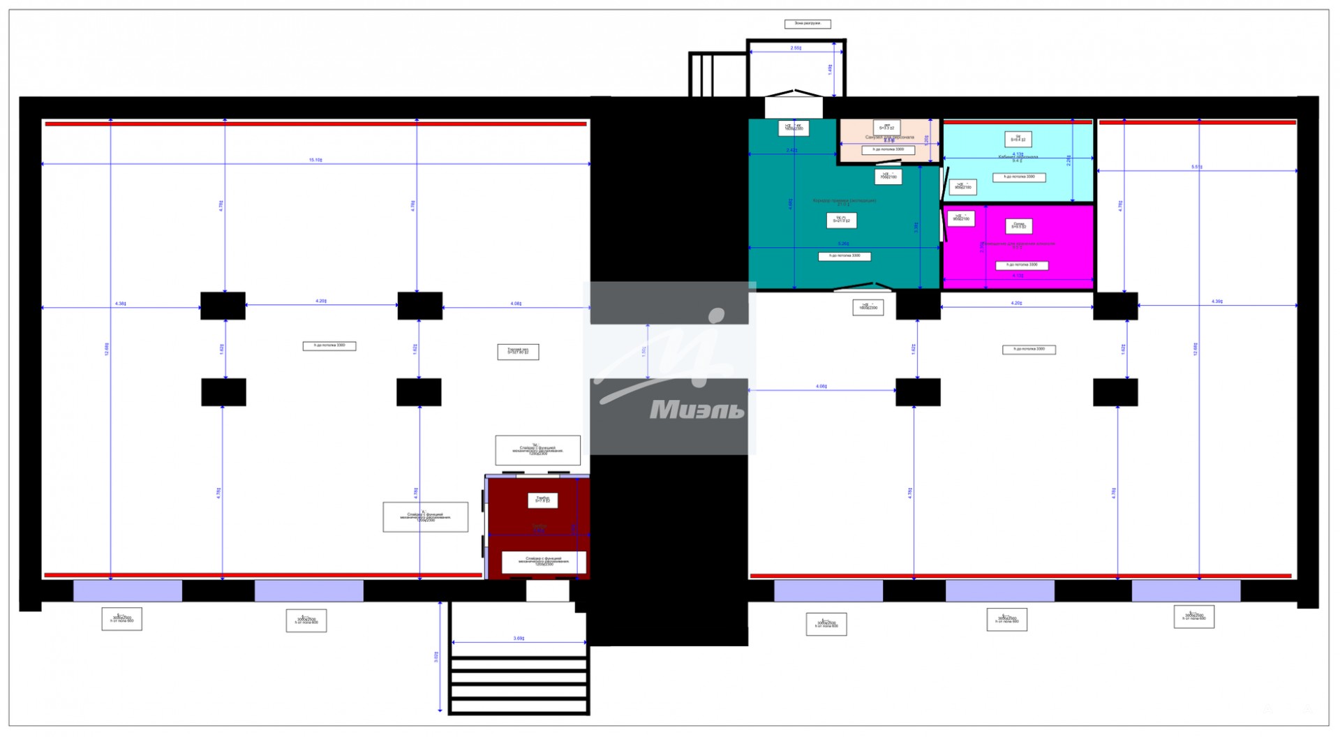 - Высота потолков - 3 м.