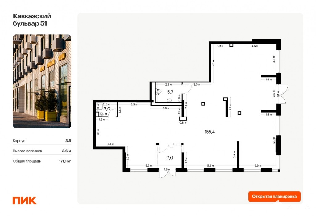 - Открытая планировка и возможность объединения помещений