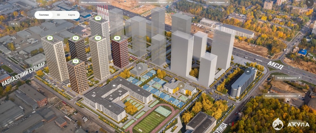 Проект «Кавказский бульвар 51» строится в районе Царицыно, недалеко от одноимённого музея-заповедника. До метро «Кантемировская» — 17 минут пешком.