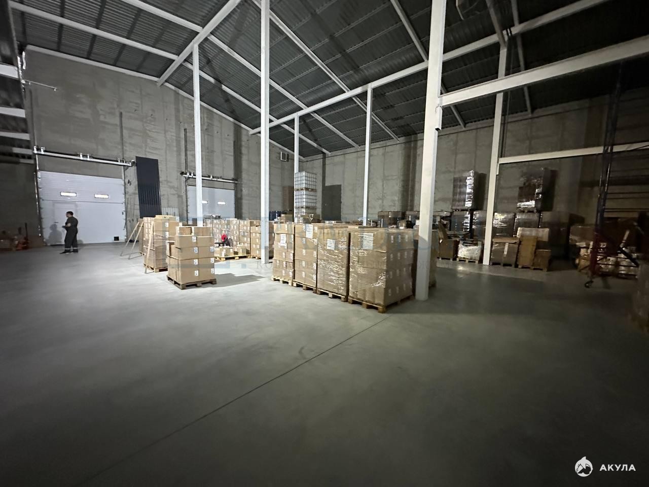 Полы - бетон с антипылью. Высота потолков - 9.5 м.