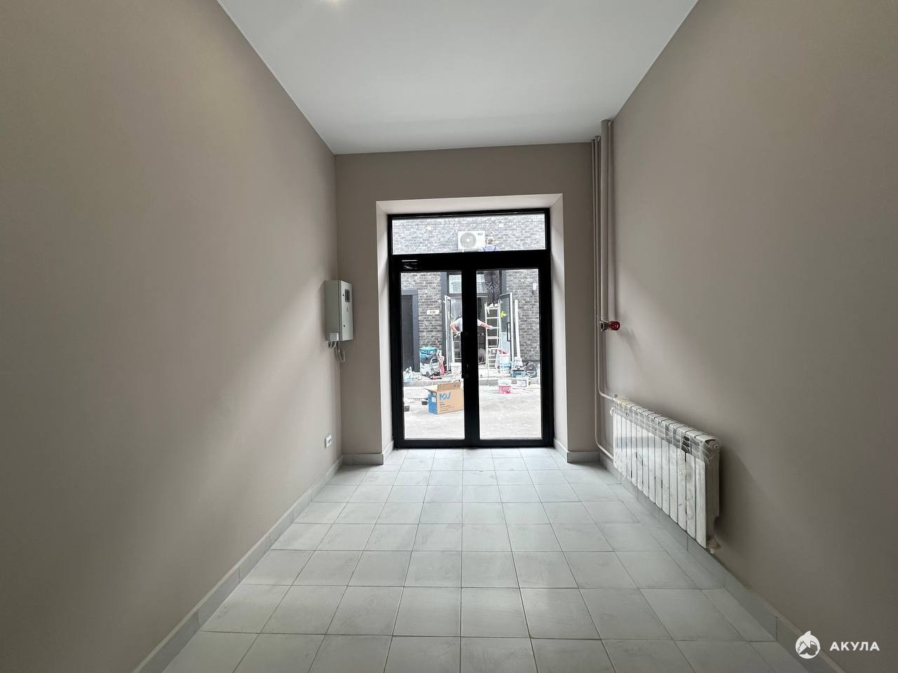 Помещение с полной отделкой. Высота потолков 4 м. Комнат в помещении - 1, одна мокрая точка, тип окон - витринные, окна выходят окна во двор.