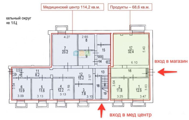 Арендаторы: продуктовый магазин и мед клиника (с мед лицензией)).