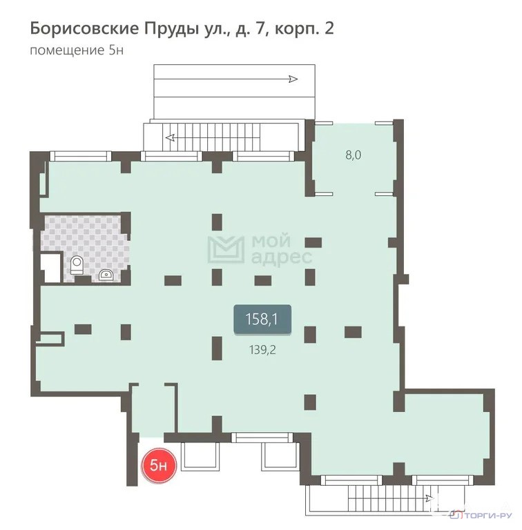 Нежилое помещение, 158, 1 м | ЮАО, р-н Москворечье-Сабурово, ул. Борисовские Пруды, д. 7, корп. 2, этаж 1, помещение 5Н | Метро: Борисово (пешком 25 мин., транспортом 24 мин., расстояние 1.81 км)