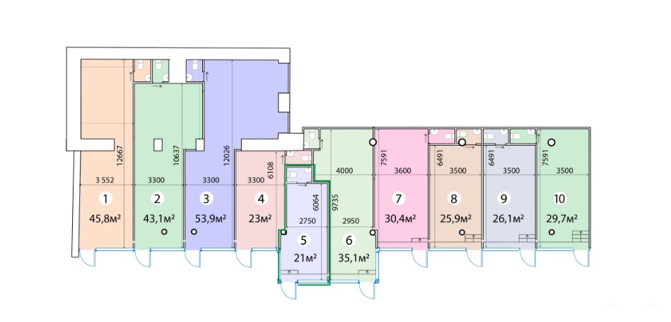 Каждое помещение — это готовое решение для запуска бизнеса с собственным входом и витриной, что обеспечивает максимальную автономность, узнаваемость и приток клиентов. Свободная планировка и высота потолков позволяют реализовать любую современную концепцию.