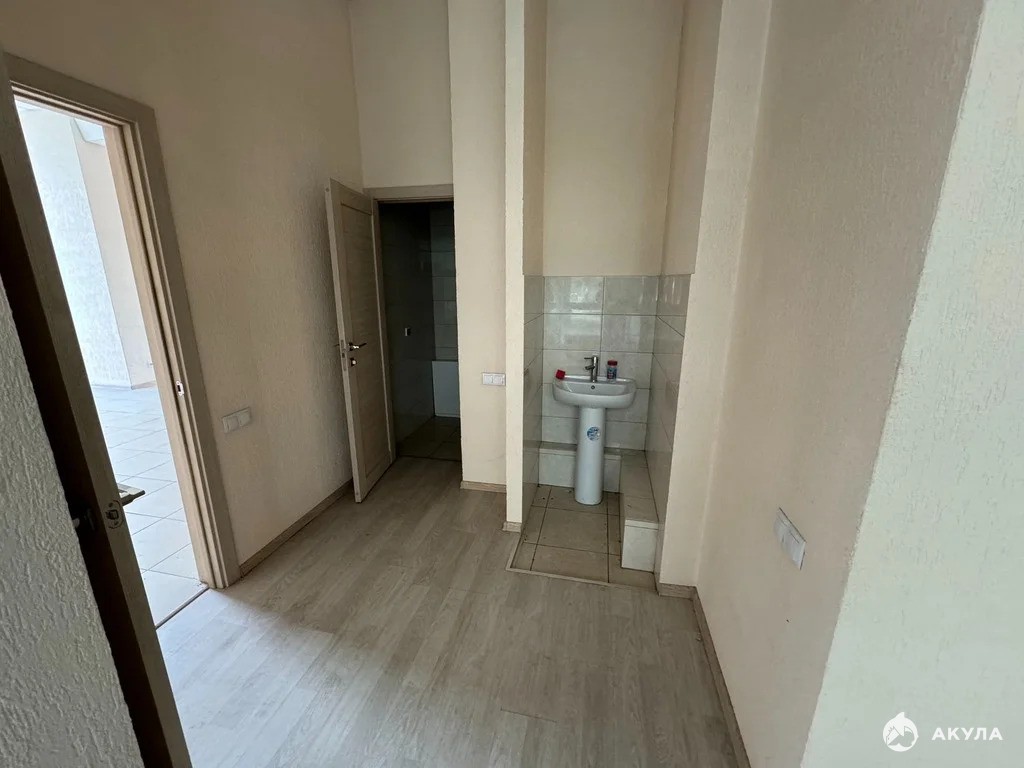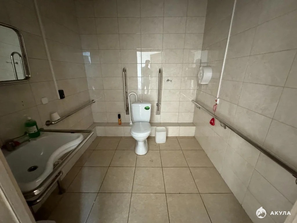 В помещении выполнен офисный ремонт - на полу ламинат, стены - обои под покраску, два с/у в плитке.