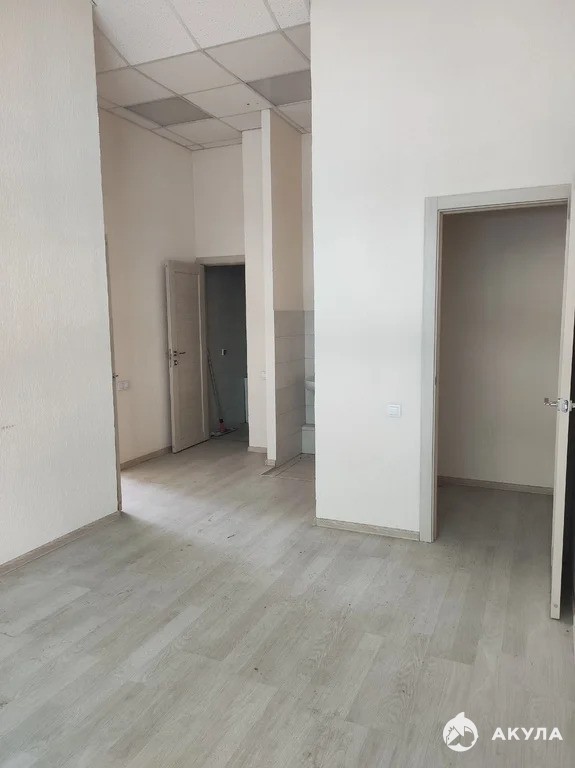 Помещение с типовым офисным ремонтом. Имеет высокие потолки и увеличенные окна, что добавляет простора.
