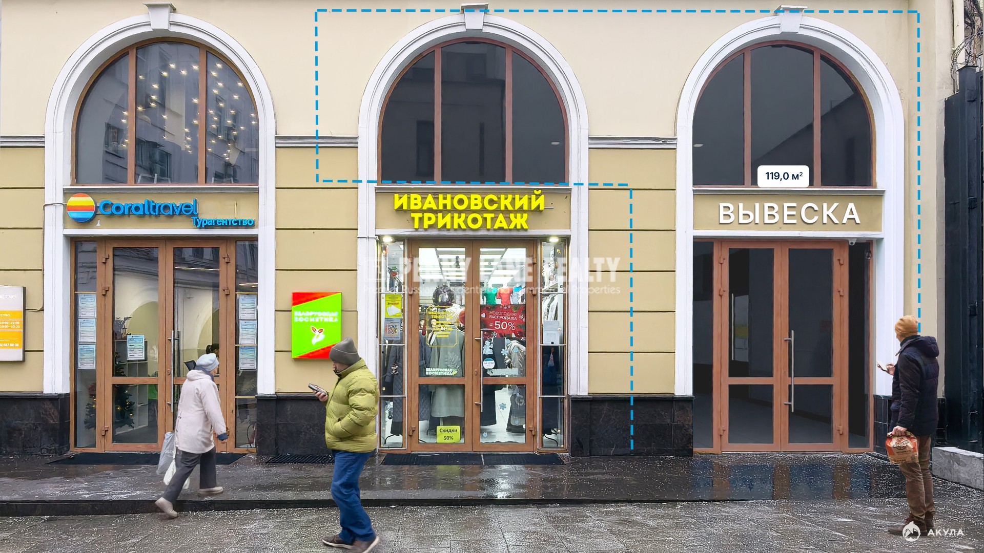 Интенсивный пешеходный трафик: Постоянный поток потенциальных покупателей и посетителей.