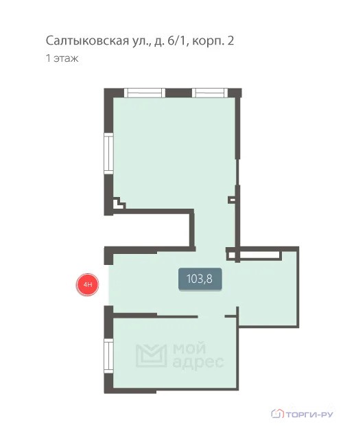 Нежилое помещение, 103, 8 м | ВАО, р-н Косино-Ухтомский, Салтыковская ул., д. 6/1, корп. 2, этаж 1, помещение 4Н | Метро: Новокосино (пешком 34 мин., транспортом 26 мин., расстояние 2.27 км)